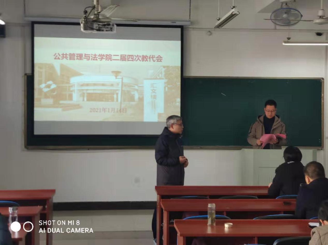 在汇文楼C-302召开二届四次教职工代表大会,正式代表、列席代表参加了会议,学院党委书记胡卫东主持会议。