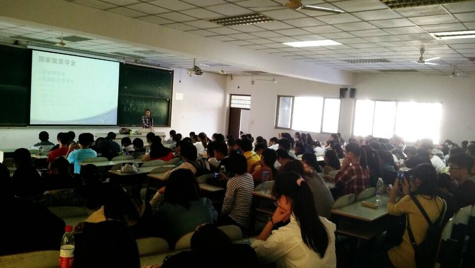 2012级辅导员许诺为全体15级新生上资助政策宣传课。