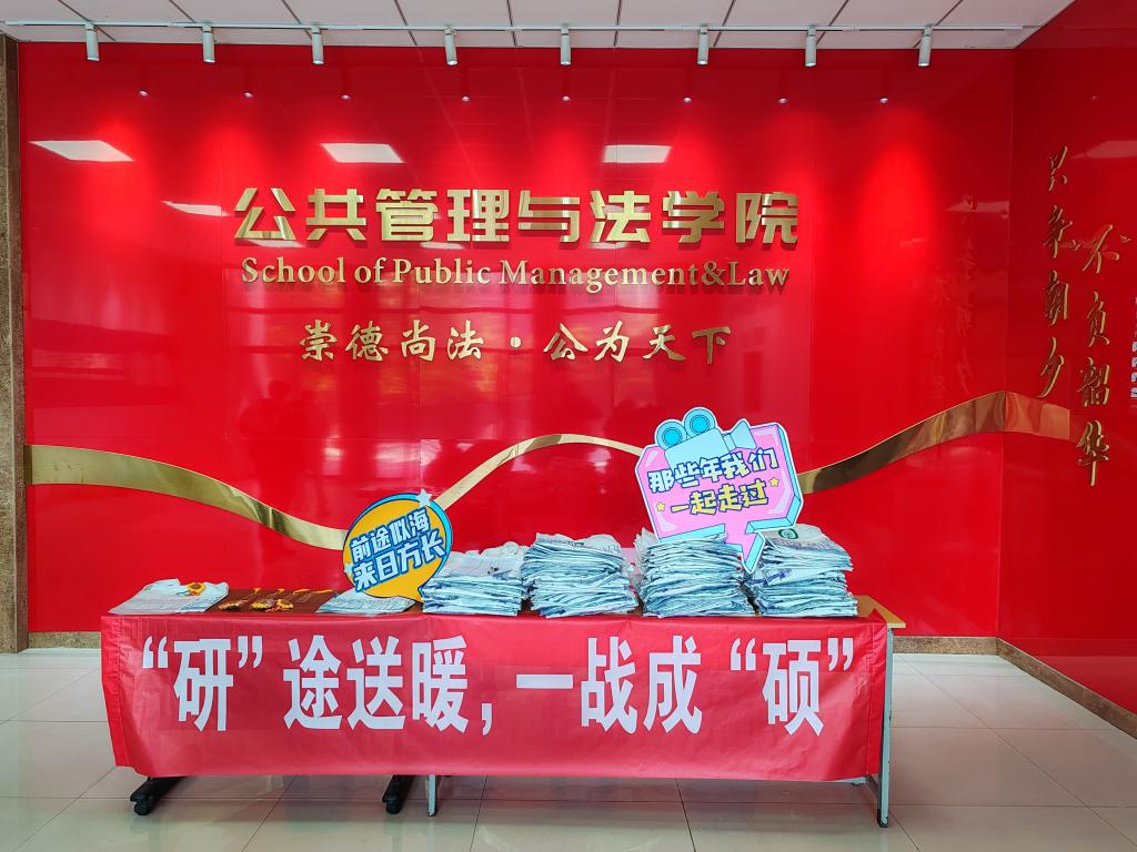 党委书记胡正友、党委副书记、学生工作副院长、纪委书记周浩然和各年级辅导员来到活动现场,为考生发放考研暖心礼包,并为各位备考学子送上美好的祝福。