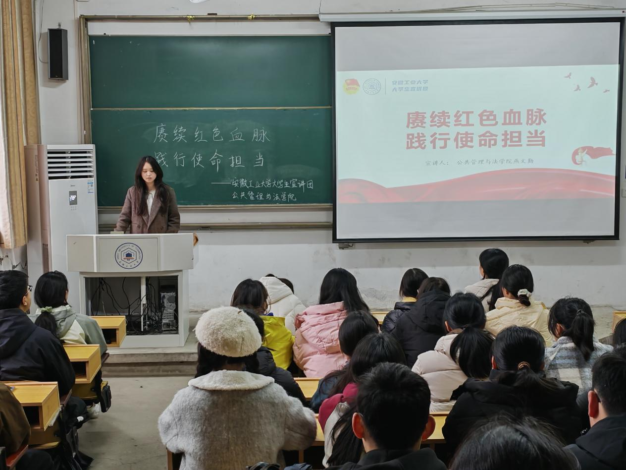 为进一步引导广大青年学习贯彻党的二十届三中全会精神,了解习近平总书记在全国教育大会上的重要讲话精神,校第九届优秀学子宣讲团成员燕文勤于3月3日在佳山校区教一115教室开展“赓续红色血脉,践行使命担当”主题宣讲活动,91探花