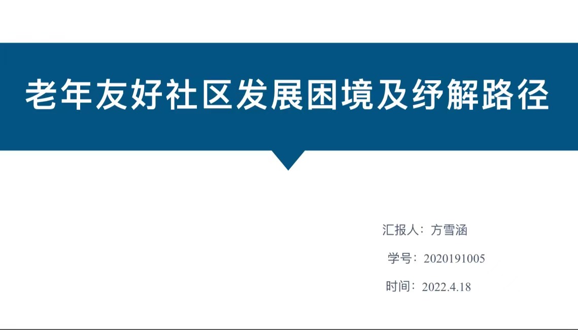 专业的研究生,第一位汇报人是朱俊同学,汇报主题为“SIPS模式下三农短视频助推农村产业发展策略研究”。他结合社交媒体时代,引入SIPS用户消费行为模型,并对当前农村产业发展瓶颈和短视频的助推策略进行了介绍,老师从内容表述和整体框架对他的论文提出了针对性的意见。第二位汇报人是方雪涵同学,汇报主题是“老年友好社区发展困境及纾解路径”。在老龄化日益严重的背景下,她引入较为新颖的研究对象即“老年友好社区”,力图提升社区居家养老的幸福感,老师分别从微观和宏观角度提出了修改建议。第三位汇报人是卢晨曦同学,汇报主题是“我国长三角地区儿童照顾政策文本量化研究”。儿童照顾问题几乎与每个家庭都紧密相关,她通过对政策文本进行分析发现了不足之处,有利于针对现实问题提出具体建议,老师针对地域选择、参考文献等方面提出了问题并给出对应的修改建议。