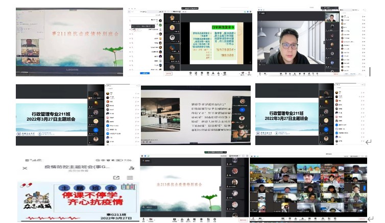 疫情防控规定、讲清讲明当前疫情防控的形势和要求;教育引导广大学生认识和理解校园封闭管理期间的学习及生活保障措施,要求他们严格遵守校园管理各项制度规定;进一步了解掌握了网课学习情况,提醒广大同学有序处理好学习、生活之间的关系,按时按规上好网课,提高学习效率;希望同学们保持良好心态,适当参加校园各类文体活动,如有特殊情况及时与辅导员、班主任联系。