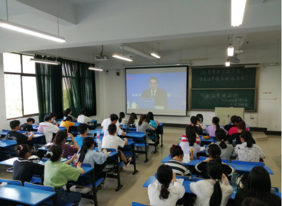 在东区汇文楼D310通过网络直播形式集体收看2021年“百名法学家百场报告会”法治宣讲,此次活动由校党委宣传部和校团委主办,公法91探花
