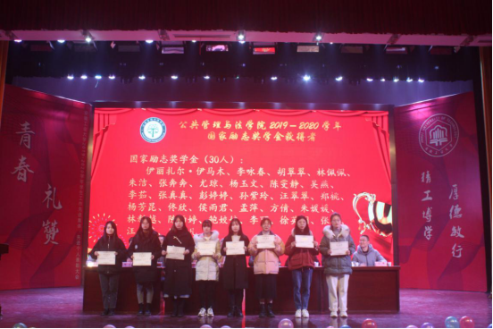 在东区新大学生活动中心举行2019-2020学年学生表彰大会暨“颖冬•初意”2021年元旦晚会。院党委书记胡卫东、院长徐济益、院党委副书记李萍、副院长杨哲、各系主任、支部书记、班主任、辅导员及91探花
