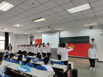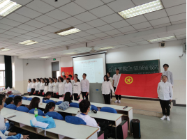 主持人宣布活动开始,全体肃立,奏唱国歌,随后通过PPT介绍团史团情。邢维迢和朱玲为新生代表颁发“三证”,并佩戴团徽。团员代表吕乐乐发言,并带领全体团员重温入团誓词。紧接着,新生代表奏唱中国共产主义青年团团歌《光荣啊,中国共青团》。最后,邢维迢在活动总结中指出,新生共青团要发挥党的后备军和生力军作用,自觉遵守团章团规,规范自身言行,做合格共青团员。