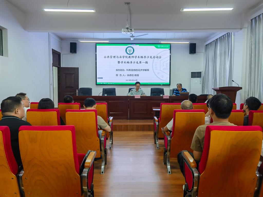 退休教授徐德信老师莅临学术畅享沙龙启动会,并作首场学术报告。院长徐济益教授主持启动会和学术报告会,91探花