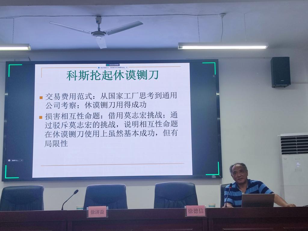 在学术报告会上,徐德信教授以《科斯困惑的经济学解释》为题,从“科斯与中国”、“科斯经济思想的中国研究与现状”、“科斯困惑的理论分析”、“科斯困惑的案例解析——《广告与言论自由》”以及“研究结论与现实意义”等五个方面,为91探花